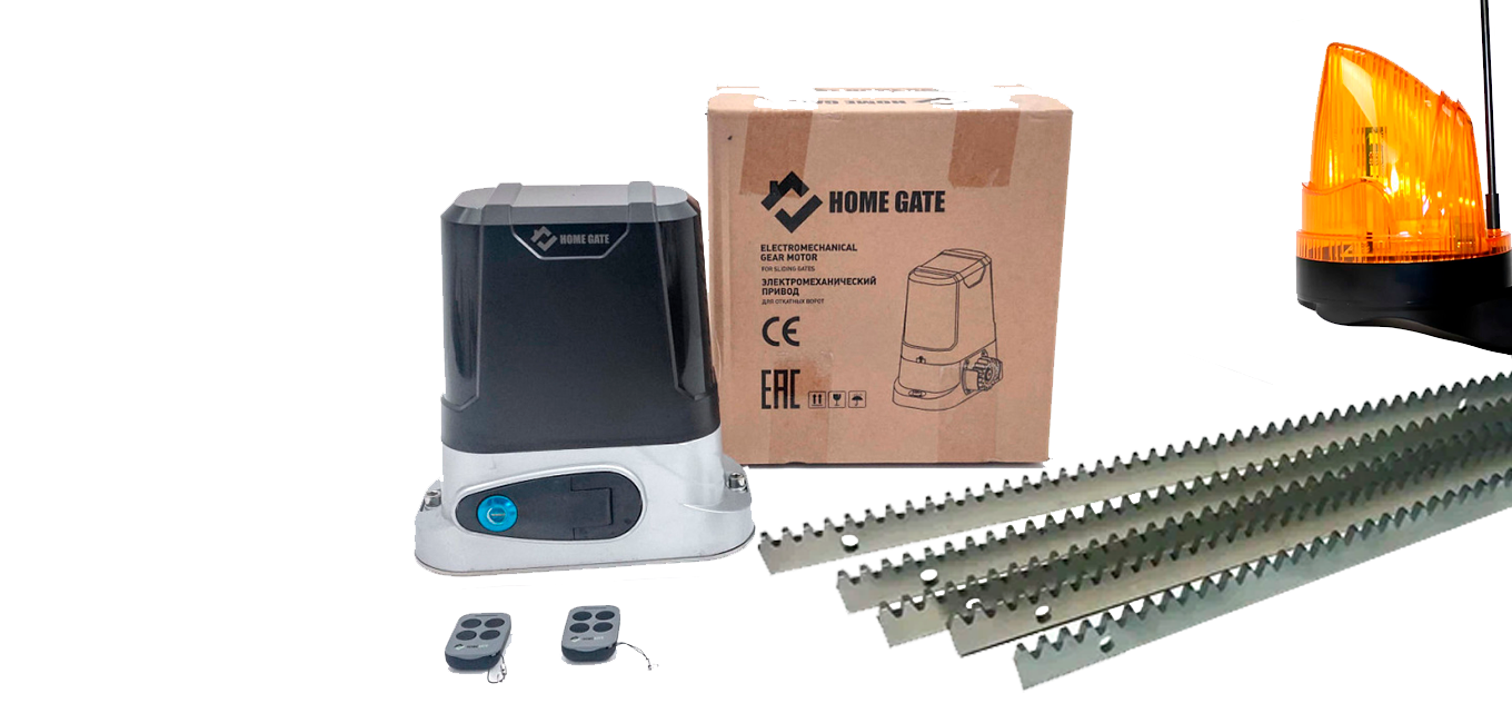 Комплект для откатных ворот HOME GATE LTM 800 + рейка 5 шт + фотоэлементы + лампа